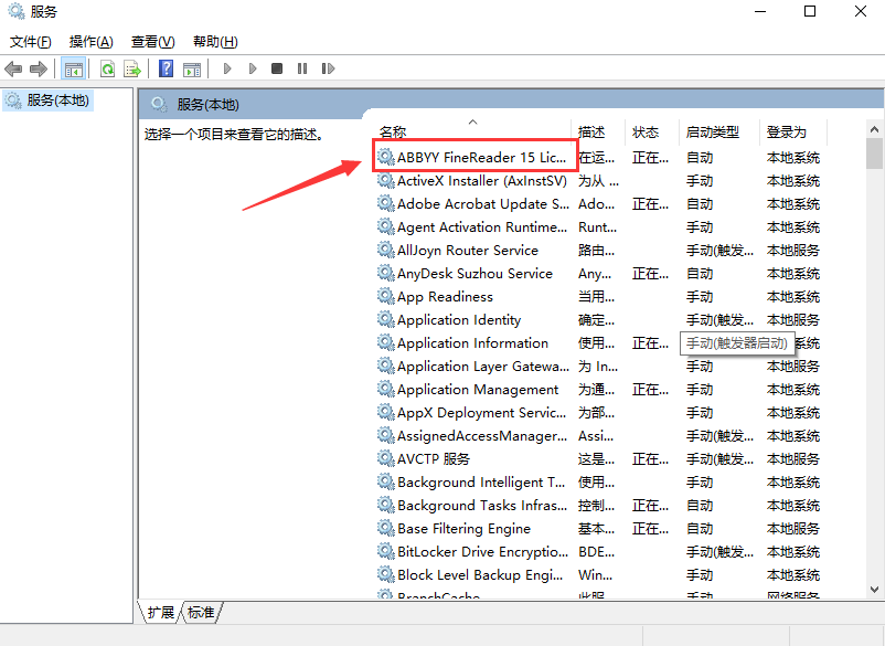 5、在服务列表中找到ABBYY FineReader 16 Licensing Service