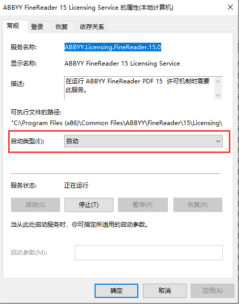6、右击ABBYY FineReader 16 Licensing Service,从快捷菜单中点击属性,选择常规选项卡