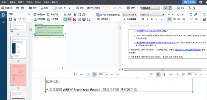 FineReader支持38种国语言的文本比对,其中包括用几种语言撰写的文档。该软件还可以自动检测文档的语言。