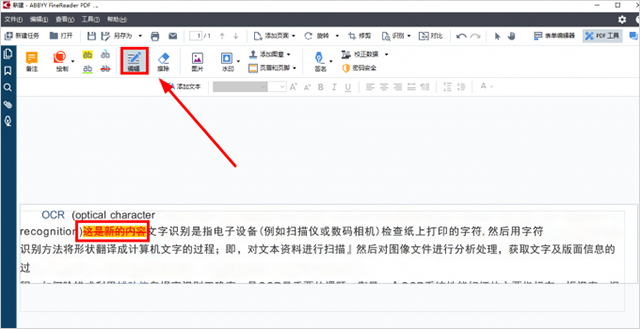 如何使用abbyy finereader 14编辑PDF文档的内容?