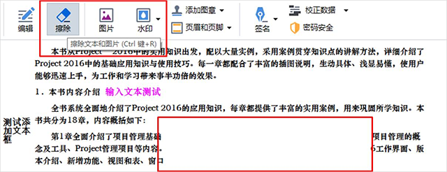 如果PDF文档中存在着一些水印或比较机密的信息的话,我们可以使用擦除文本和图片的工具,快速地擦除特定的文本或图片。