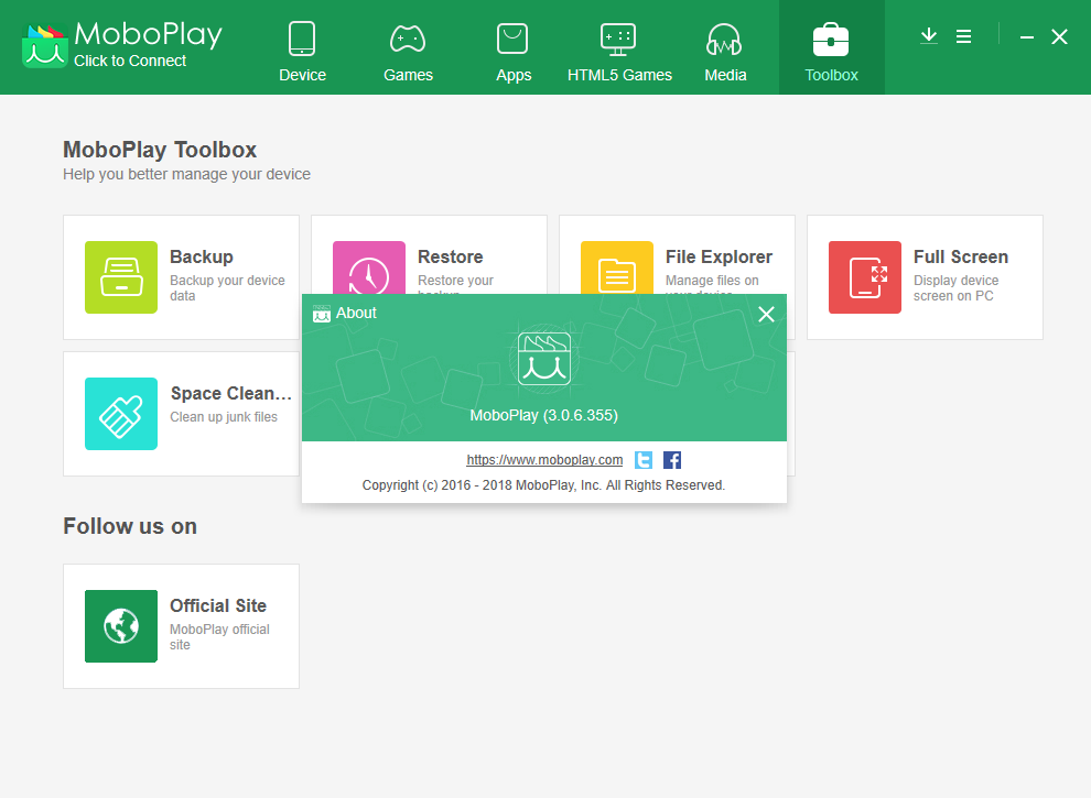 另外MoboPlay市场PC版还拥有贴心的实用工具,包括资料备份,资料恢复,档案管理,空间清理,手机瘦身,铃声制作等功能,以及通过手机一键式备份和恢复联系人,短信,通话记录,图像,应用程序数据和音乐,让你不要再丢失重要数据,是你电脑管理手机最好的辅助工具。