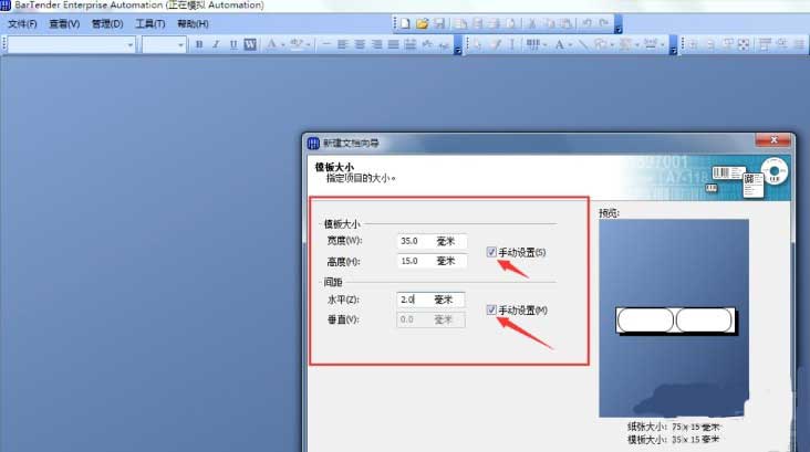 4、设置好行数列数之后下一步是设置模板的大小,根据自己的需求对标签的每一个单元的模板大小宽度、高度进行设置,设置完成之后进入下一步。