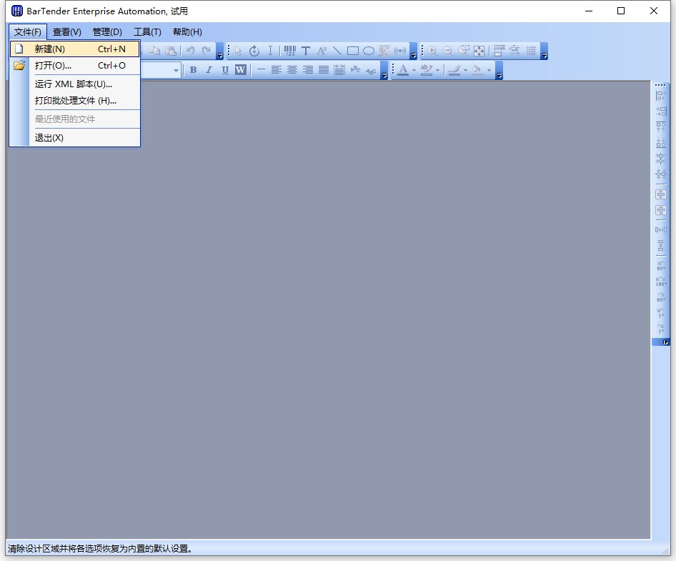 1、 打开Bartender软件,点击“文件”选项卡,选择“新建”;