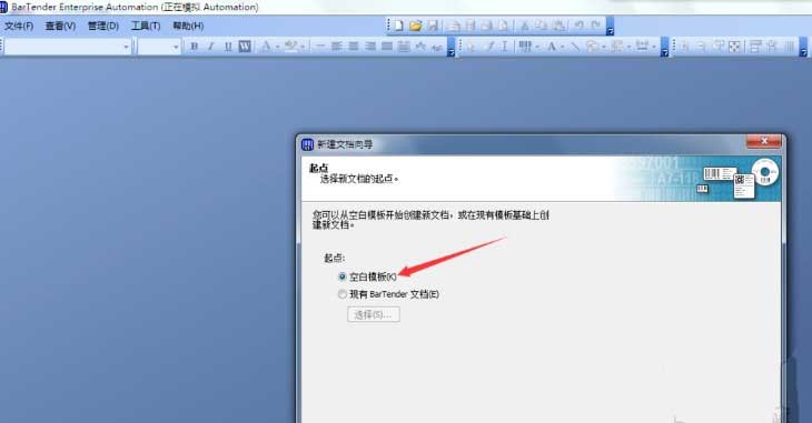 3、这里以“空白模板”为例,点击“下一步”按钮后,会出现一个空白的标签模板,可以根据需求添加文本、图形、条码等元素;