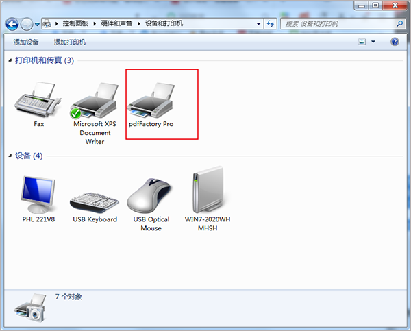 5、进入控制面板-硬件和声音-设备打印机中,可以看到"pdfFactory Pro" 打印机;