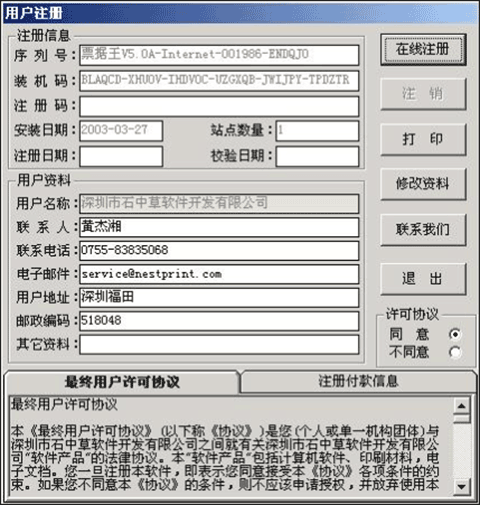 注销:重新安装操作系统,或在另外的一台机器上安装本软件。需要先注销才能注册。