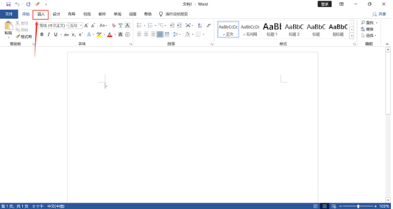 第一步:首先打开word软件,进入其操作主界面,然后单击菜单栏“插入”按钮。