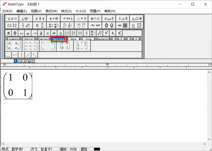 1、打开软件进入公式编辑主界面,随后在主页面中选择Matrix选项,可以进入到矩阵的工具栏界面。