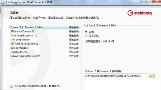 默认目录为【C:\Program Files\Steinberg\Cubase LE AI Elements 7】;