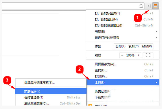 2、打开浏览器的【扩展程序页管理页面】或者地址栏输入 chrome://extensions/ 按下回车打开扩展程序页面
