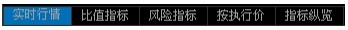 T型报价可以在左下角选择标签切换显示类型:实时行情、比值指标、风险指标、按执行价、指标纵览。