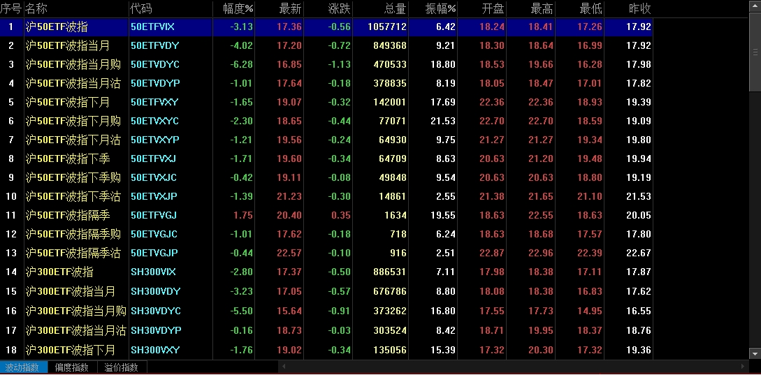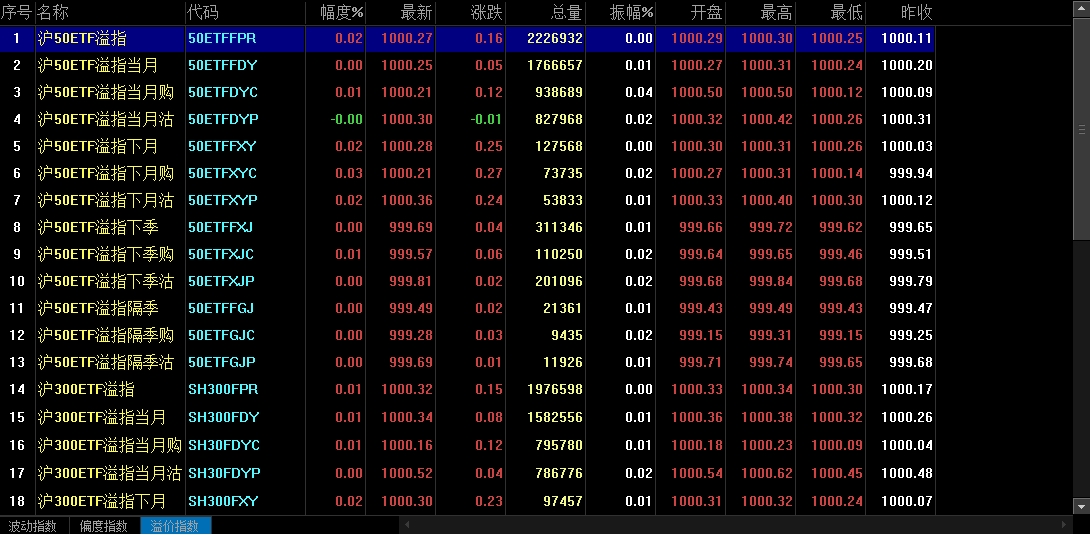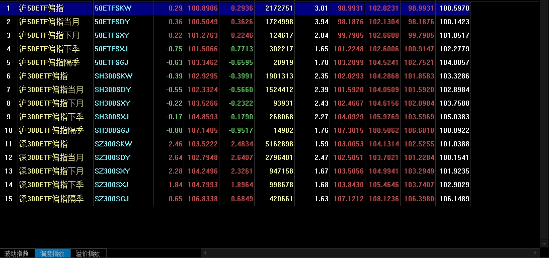 波指模块包涵了:波动指数、偏度指数、溢价指数