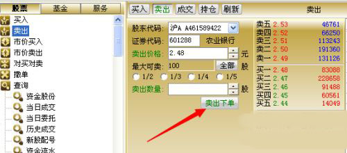 5、然后设置卖出价格和数量,点击“卖出下单”