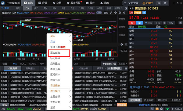 3、然后点击鼠标右键,在下拉菜单中选择添加自选即可
