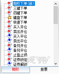 2、在交易界面的左侧栏选择委托类型,包括:三键下单、四键下单、快速下单、买入开仓、卖出开仓、买入平仓、卖出平仓、备兑开仓、备兑平仓等多钟下单选择模式。