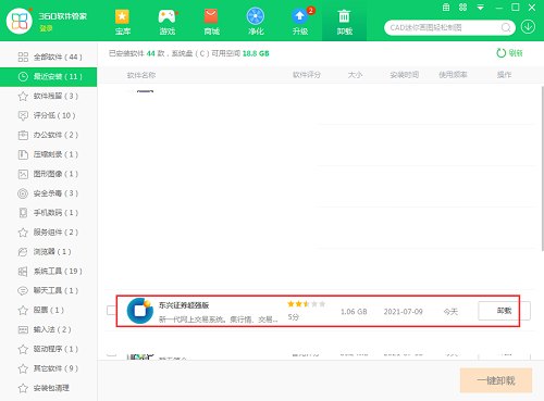 方法二:安装并打开360软件管家,在卸载选项的列表中找到国金证券至强版软件,点击卸载即可