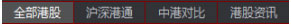 港股菜单包括全部港股、沪深港股、中港对比、港股资讯行情信息。