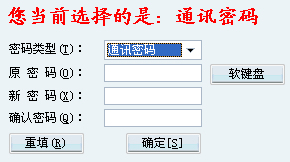 您可以选择“通讯密码”,“交易密码”及“资金密码”等三种密码进行修改。修改时需要输入原密码进行校验。