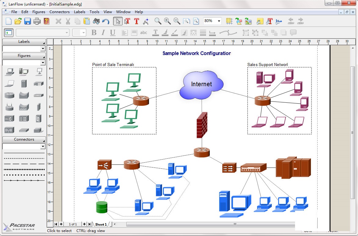 PaceStar LanFlow算得上是一款强大网络拓扑图制作软件,拥有详细使用图解,合理的操作设计界面,它包括二维和三维轮廓常见网络符号,符号,和一些基本的方框图符号,你可以添加剪贴画代表从您的特定环境下的网络设备。与一般拓扑图绘制软件不同的是,PaceStar LanFlow可以让使用者不用花费太多的力气,就可以制作出EMF,WMF,BMP,JPG等格式的网络拓扑结构图。