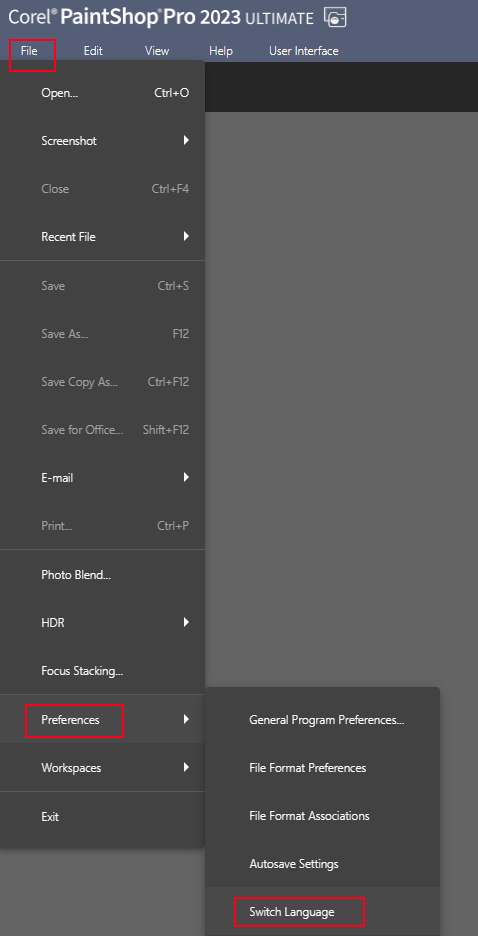 9、打开软件,默认为英文,依次选择file--preferences-- switch language--选择繁体中文,重启软件;