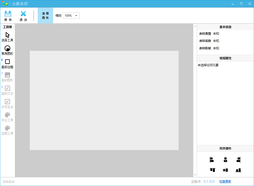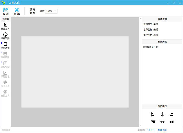 1、在本站下载解压,得到火箭水印单文件版,进入之后,首界面如下图所示: