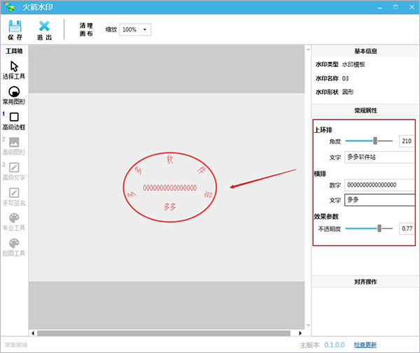 支持用户对选中的印章进行文字的排列角度以及透明参数设置软件特色
