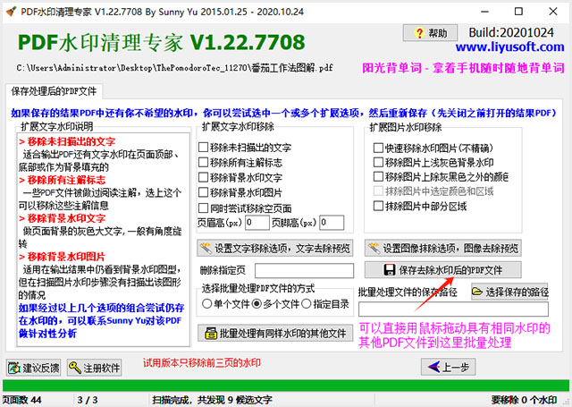 总的来说,这是一款挺实用的工具,适合需要处理大量PDF文件但又经常被水印困扰的人。虽然我不太常需要用到这样的工具,但如果工作中真的遇到带水印的PDF,应该会很省心!