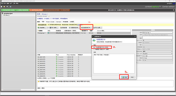 选择影像/Photos选项卡,然后点击添加影像/Add photos按钮,添加要建模的照片;