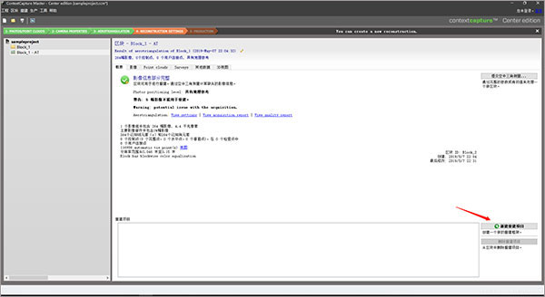 空三运算结束后,点击右下方新建重建项目/New reconstruction;