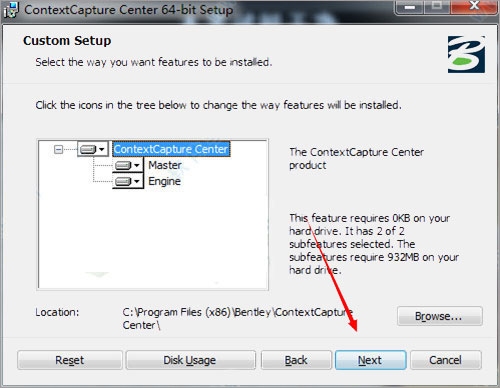 注意:要将路径更改为C\Program Files (x86)\Bentley\ContextCapture Center,