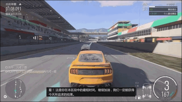另一方面,如果你是系列的老手的话,练习赛也是一个挑战并提升自己驾驶技巧的机会。本作在赛道上加入了“关键赛段”功能,当驾驶到这些赛段时,系统会精确记录玩家每次通过该赛段的时间,并与玩家之前创下的最快纪录做出实时对比,方便你掌握更精准的刹车力度和过弯时机。