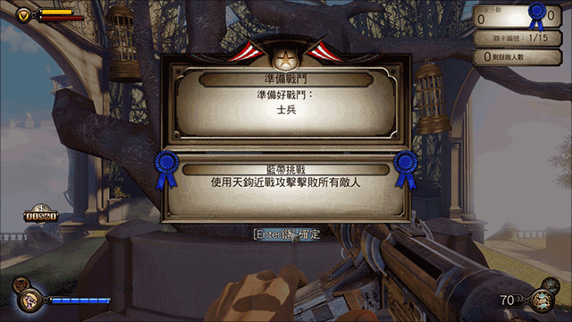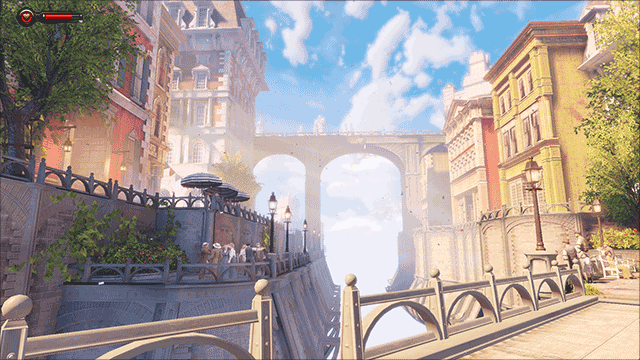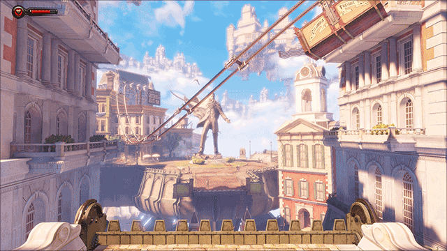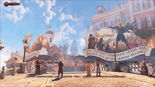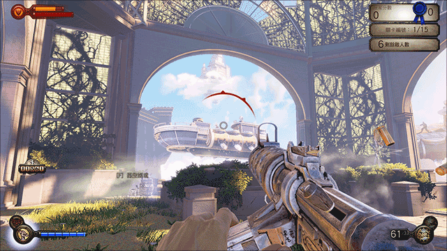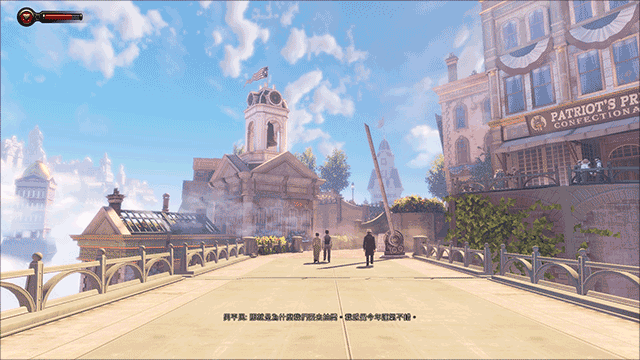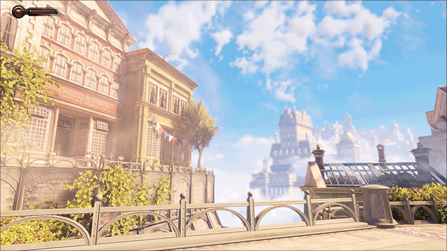 13、随着攀登声音的结束,随着一声哈利路亚的女性欢呼声音跃出,玩家就来到了美丽又充满阴谋的天空之城哥伦比亚,在这里,玩家可以好好欣赏一番天空中的美丽景色;