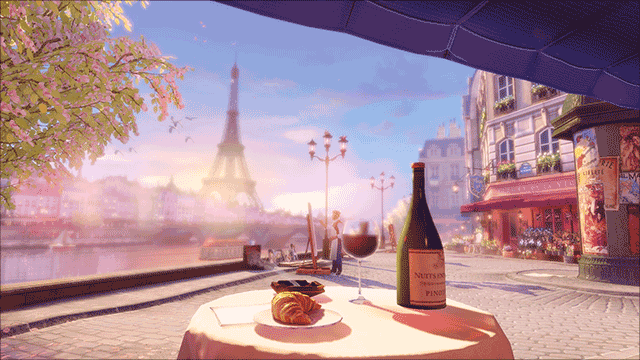 巴黎城市一隅,红酒与羊角包似乎是寓意着一个美好的下午?