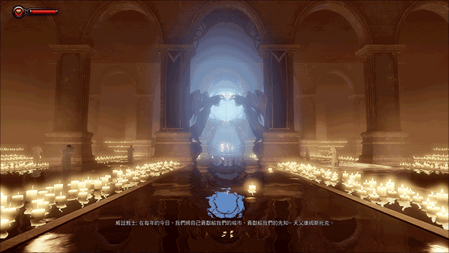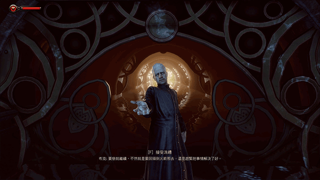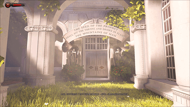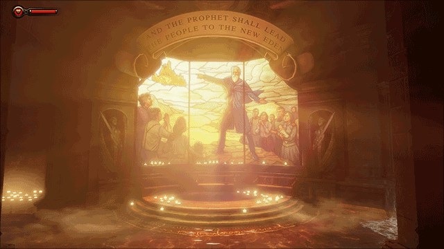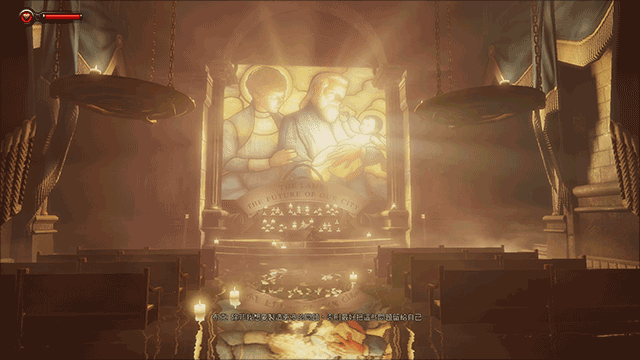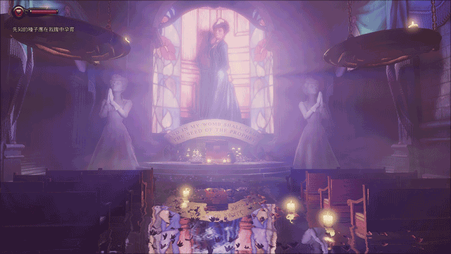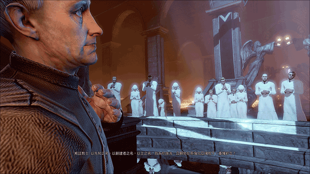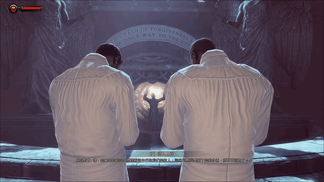 17、这里就是洗礼堂了,玩家在这里可以观察这里人们的举止和行为,而且从远处洪亮的声音可以知晓,先知就是康斯坦丁(也就是另一个时空的布克),我们继续前进;