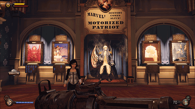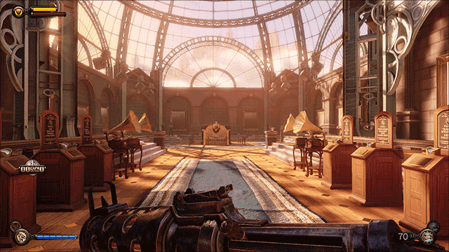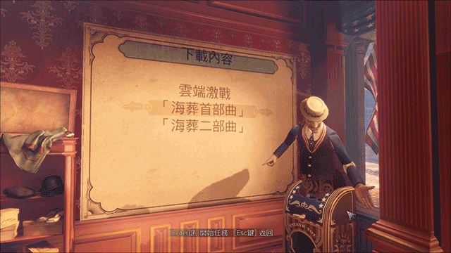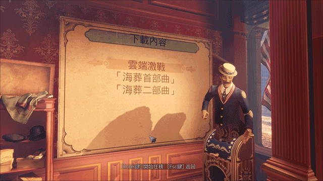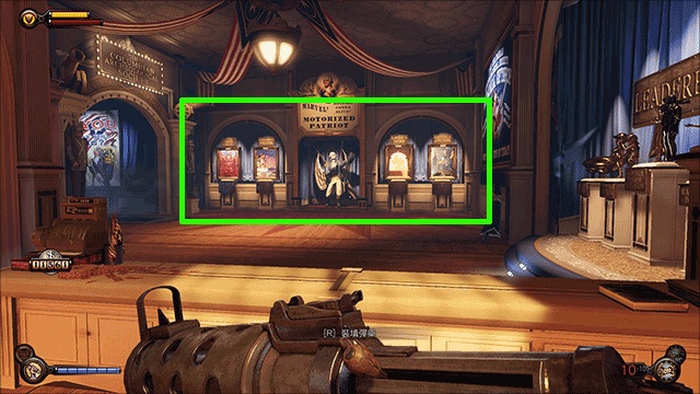 路尽头的左边则是生化奇兵系列一直以来所拥有的博物馆系统,在这里玩家可以通过游戏中搜刮的钱财来解锁和查看游戏中的物品与人物