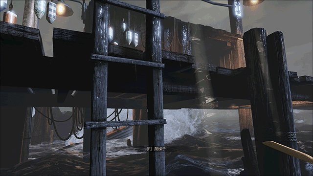 7、来到灯塔岛的码头后,玩家需要按下F键爬上梯子(这里需要注意的是,游戏年代比较远,所以和中文输入法会产生冲突,建议玩家把输入法设置为英文,或者在游戏中按下默认键Shift键切换输入法);
