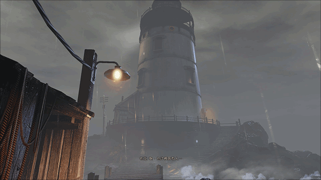 9、朝着灯塔前进,顺着蜿蜒的阶梯来到灯塔门前后点击F键进行敲门,在这里,玩家还能发现一张贴在门前的告示,是来通知灯塔里人的;