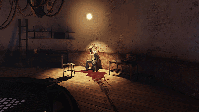 剧情结束后,玩家就可以进入灯塔发光房间的内部了,在这里,玩家需要靠近这把红色的椅子后按下F键进行互动,在这里,玩家也会被进行一些安全检查,一开始获得的毛瑟手枪也会在此被丢弃