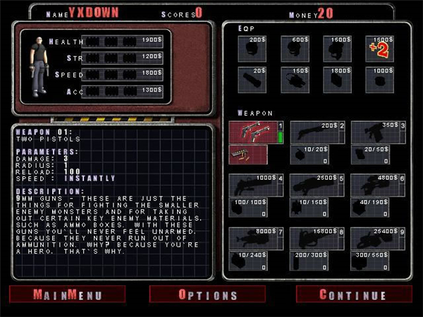 孤胆枪手电脑版是一款经典的第三人称射击类游戏,英文名《Alien Shooter》,游戏是以从上往下的俯视进行的,键盘上下左右或者AWSD操作移动,鼠标射击(鼠标右键也可以移动),操作简单上手容易,怪物超多,各种可以使用的武器也很多,在射击到怪物身上时还会把怪打暴,鲜血四溅,简单的说,打起来就一个字——爽! 游戏分为通关模式和死亡竞赛模式,通关模式大概讲述了一个类似于《生化危机》的故事:在一个实验室中,正在做研究的科学家们突然离奇死亡,主角被派往调查,进入实验室之后,发现是由一些外星生物杀死的,做为主角的你自然就会为了拯救世界,在实验室中开始了清理行动……
