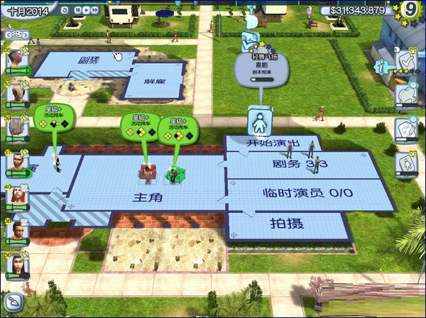 d)公关和市场PR&Marketing。将一部还没有进入casting office里rehearing的剧本先拿到公关部,这就是所谓的PR。当然你也可以把一部拍摄到一半的片子拿去PR,不过演员的工资是照付的。一部片子拍完后,根据不同的质量,在production office里选择不同的marketing方案来进行发布(release)。成功的公关和市场方案能够帮你赚取足够的票房。
