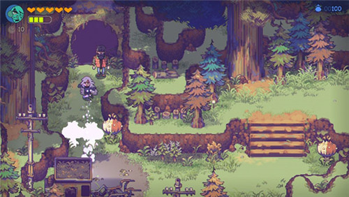 Eastward的人物采用了纯手绘的逐帧动画。我们在像素的场景中加入了3D光照系统,让传统像素场景变得不同以往,物体在不同的光照条件下有着差异化的视觉呈现,你将置身于一个生动而多姿多彩的世界中!