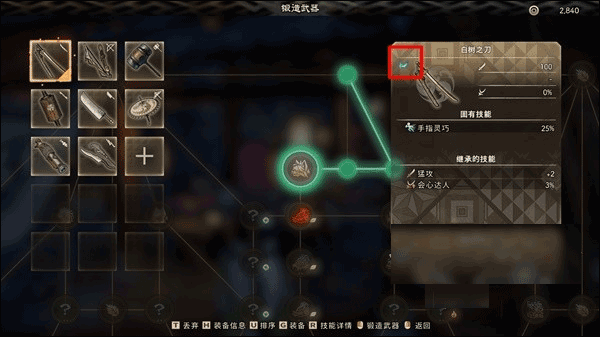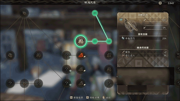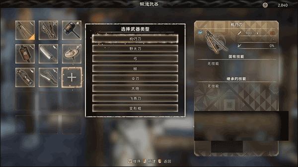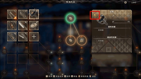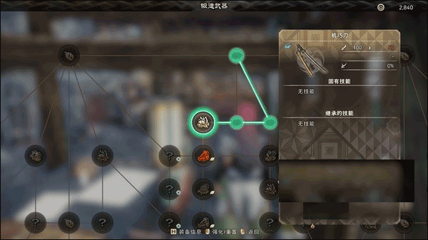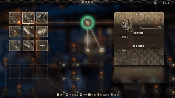 后续可以通过花费材料来对基底武器沿着科技树进行升级,新武器可以从上一个等级的武器所拥有的技能种选择继承。