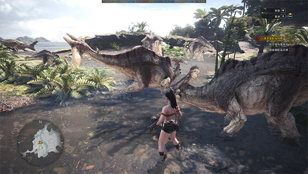15、当小地图周围没有边框时,玩家奔跑不会消耗耐力槽,当小地图边框变成红色,说明被怪物发现,并处于交战状态,变成白色,说明虽然被发现,但怪物没有进入与玩家交战状态,战斗中边框突然由红色变成白色,通常说明怪物要移动换区了。