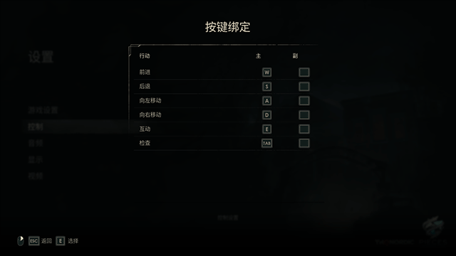 2、在设置界面的控制一栏中选择并点击“绑定按键”的选项,就可以浏览和更改按键了;