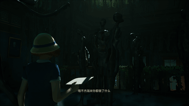 11、当小女孩走到雕塑内时,画风一变,玩家现在置身于一座恐怖的大宅内了,属于玩家的冒险也就正式开始了。