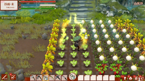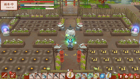 在一方灵田中角色可以使用各种工具进行耕种及采集工作。
