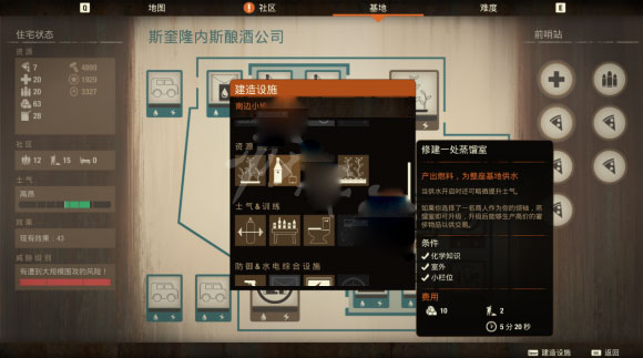 玩家可以选择斯奎龙内斯酿酒公司(俗称大酒厂,位于米格尔山谷,风车图)来作为基地,该基地内含两个蒸馏室可以制作酒精。