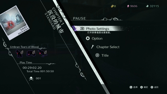 画面右上角则显示的是玩家当前拥有的货币数量,游戏中一共有三种货币分别为光环、宝晶和胚胎结晶,需要消灭对应的敌人掉落或是通过场景中拾取获得。