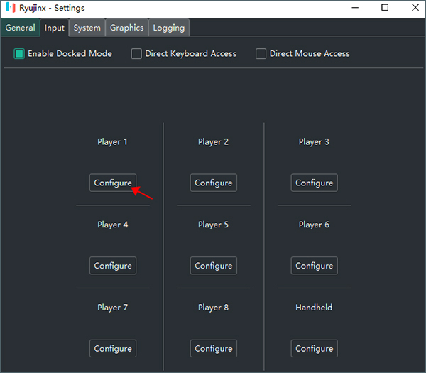 3、来到模拟器设置界面后,点击Input选项并点击Play1选项下的Configure选项;